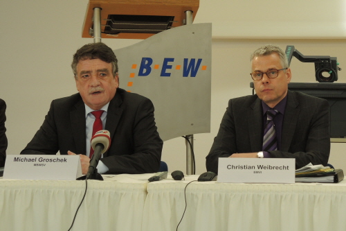 Straßen NRW kann dabei auf die Unterstützung der verladenden Wirtschaft zählen, machte Gerd Deimel von der Logistikinitiative des Chemieverbandes VCI deutlich. Groschek kündigte außerdem Gewichtsblitzer und verstärkte Polizeikontrollen an, Weibrecht will das BAG einsetzen. Bei Verstößen gegen die LKW-Fahrverbote sei nicht nur mit empfindlichen Bußgeldern und Gewinnabschöpfung zu rechnen, sondern im Wiederholungsfall auch mit Stilllegung des Fahrzeugs. Wie Deimel, der selbst Ingenieur ist, erläuterte, dürfe die Brücke beim Schweißen nicht schwingen. Jeder Schweißvorgang, der wiederholt werden müsse, schwäche das Material zusätzlich.