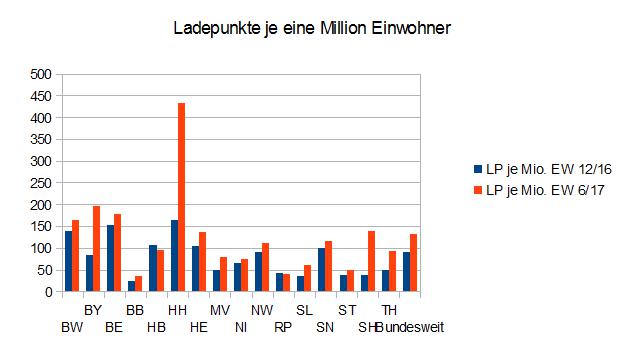 Für Schleswig-Holstein hat sich die Zahl der Ladepunkte auf diese Weise fast verdreifacht, mehr als durch den allgemeinen Zuwachs an Ladepunkten zu erklären wäre. Dieser schwankte in der Vergangenheit zwischen 6 und 18 Prozent je Halbjahr. In Bayern und Hamburg hat sich die Zahl der Ladepunkte in der neuen Erhebung mehr als verdoppelt. Die neuen Zahlen könnten auch dazu beitragen, das Auseinanderklaffen von Elektroauto-Nachfrage und Ladepunktdichte zumindest etwas besser zu erklären (siehe hier).